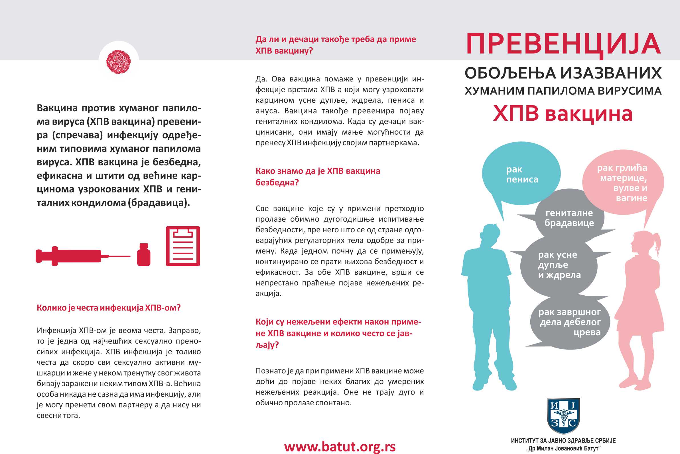 Хумани папилома вирус (ХПВ) је одговоран за готово све случајеве рака грлића материце. Према подацима Регистра за рак, Института за јавно здравље Србије „Др Милан Јовановић Батут”, сваке године се у просеку региструју 1244 новооболеле жене од рака грлића материце. Сваке године у просеку 482 жене изгубе живот од ове врсте рака. На основу процена Међународне агенције за истраживање рака (IARC) и Европске мреже регистара за рак (ENCR), Србија се и даље налази у групи европских земаља са највишим стопама оболевања и умирања од рака грлића материце. Хумани папилома вирус је такође одговоран за више од 90% случајева рака завршног дела дебелог црева, 71% случајева рака гениталних органа код оба пола и за 72% случајева рака усне дупље и ждрела.