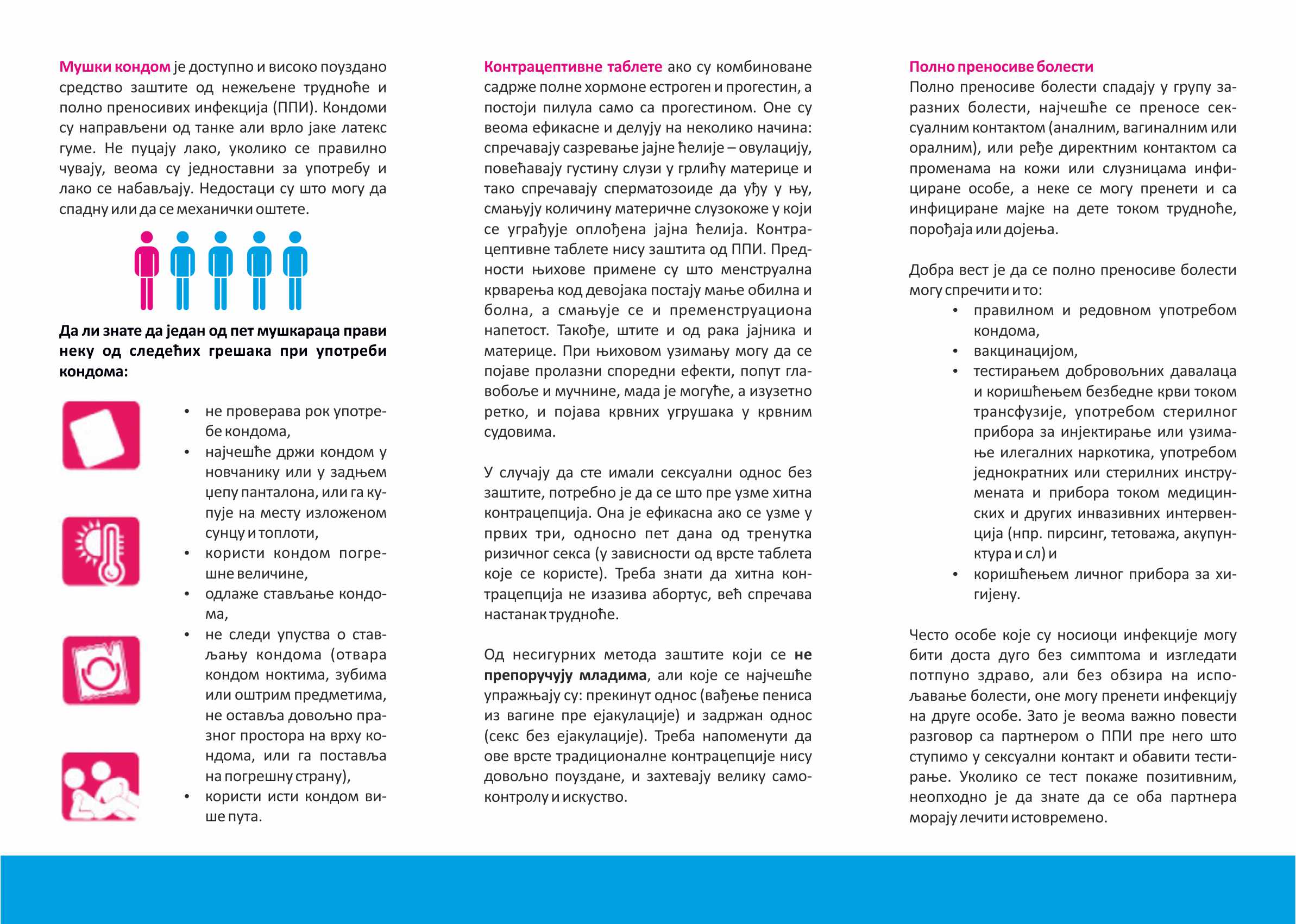 - дистрибуцију едукативно-промотивног материјала на јавним местима као што су тржни центри, метро станице, аутобуске станице, као и пружање савета и информација о значају коришћења доступних превентивних програма,